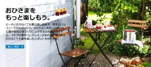 遠くまでいかなくてもアウトドアやおひさまを楽しもう!という企画で、魅力的な商品が盛りだくさんです。お庭や近くの公園に持ち運びができるテーブルセットや、落としても壊れにくい素材(プラスチックやメラミン製)のカトラリーも豊富です。イケア製品はカラフルで従来のアウトドア用品とは思えない可愛さです。もちろん普段使いにもおすすめです。