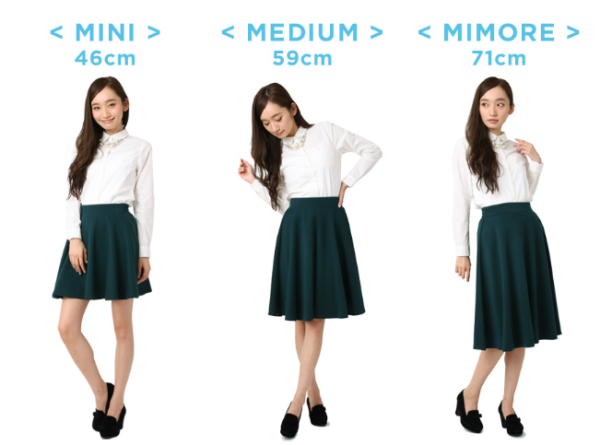 ・ミニ(46㎝)・ミディアム(59㎝)・ミモレ(71㎝)