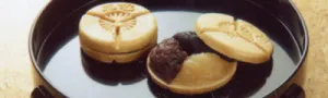 中が3つのお部屋に分かれていて、小豆、白餡、胡麻あんまたは抹茶あんが入っています。