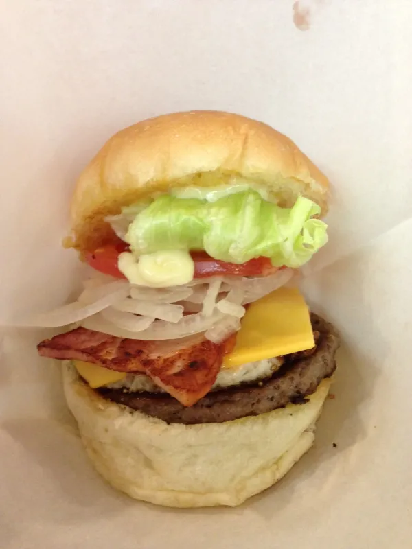 具は、パテ・ベーコン・チェダーチーズ・タマネギ・トマト・レタス。