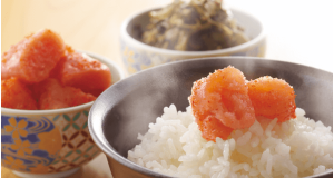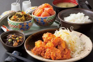 どのランチメニューも、有田焼に入った「高菜」と「明太子」、