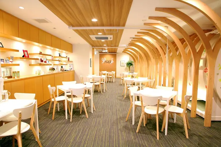 店内は自然の中にいるような落ち着きのあるウッド調が特徴。