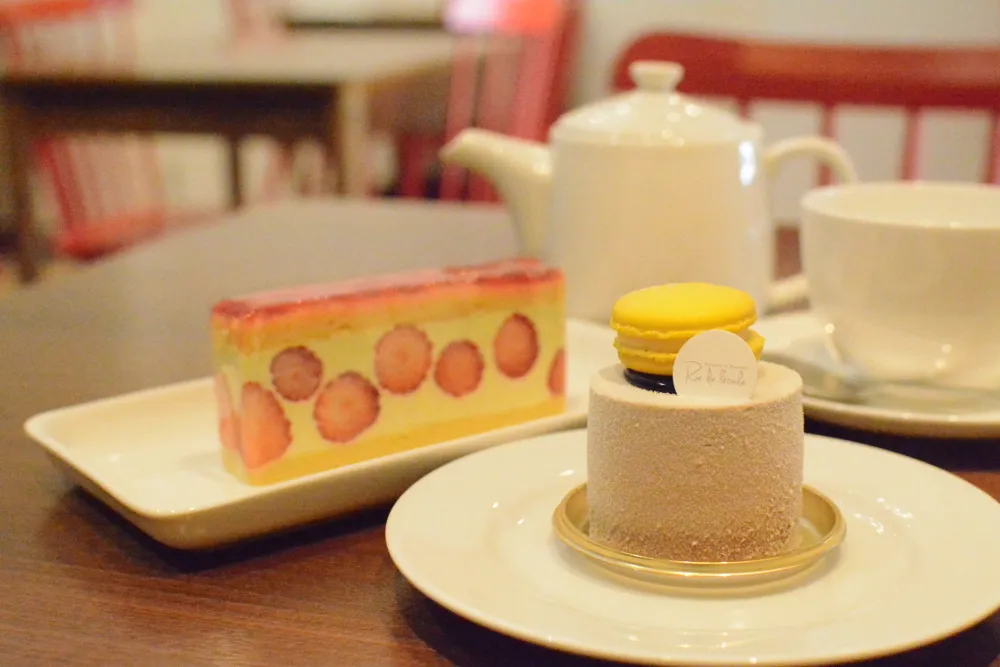 ケーキや洋菓子を扱うパティスリーと、フレンチ料理を扱うブラッスリーを融合させたスタイルのお店だ。