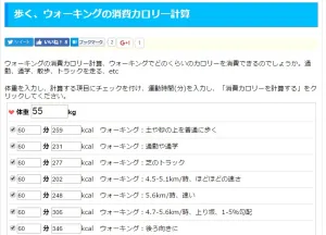 また、ウォーキングという点から見て、運動効果はどれくらい?と気になる人のために、消費カロリーを計算できるサイトもあります(http://hbb.amary-amary.com/calc_walking.php)。