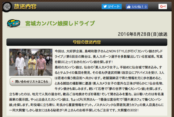 http://www.tv-tokyo.co.jp/drive/backnumber/20160828/