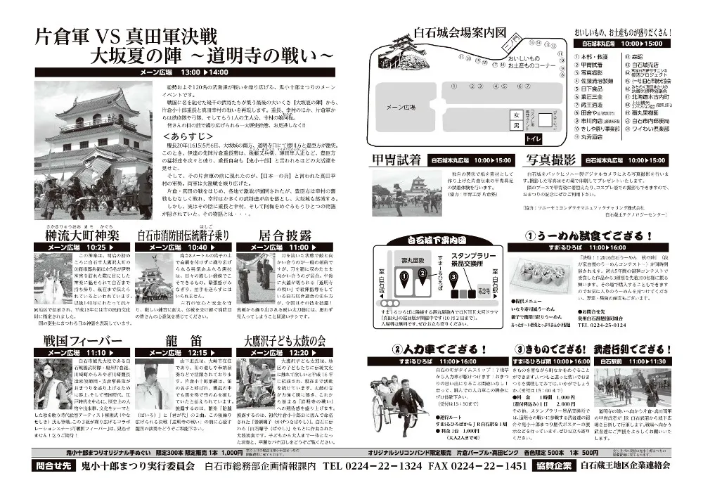 伊達政宗の忠臣だった、片倉小十郎の城がある白石市で行われる、「鬼小十郎まつり」
