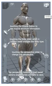 裸なので、服のシワまではわかりませんが、自然なポーズを描くためには、筋肉の動きを知らなければいけません。ということで、このアプリを参考にして、筋肉デッサンの練習ができます。