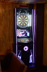 ダーツはもちろん、店内には大型モニター2台を完備し、