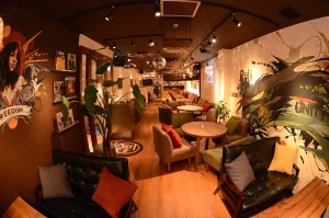 「和」をトータルコンセプトとし、グラフィックデザイナーによるウォールアートの映える空間が特徴。