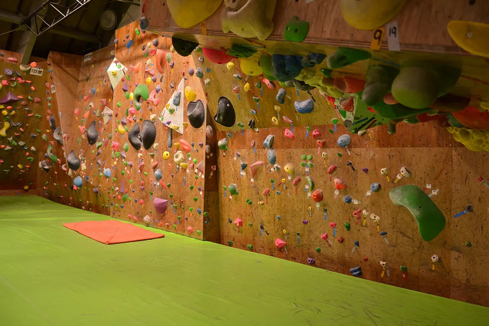 ▲ボルダリング:身一つで4〜5mの壁を登る