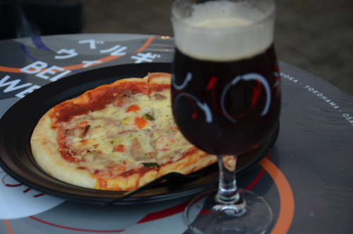 こんな過ごしやすい天気の中、外でビールを飲みながらピザが食べられるなんて、最高です。