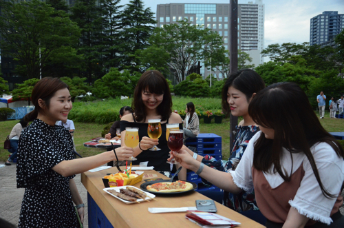 エリア内では、サラリーマンから大学生など、幅広い層の人たちが、ビールを楽しんでいます。