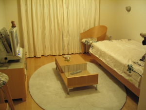 朝食と夕食を世話してくれます。ありがたい。ついうっかり食事をめんどうに思ってしまう独身女性の強い味方です。共有設備も利用できて(コインランドリーあり)便利です。